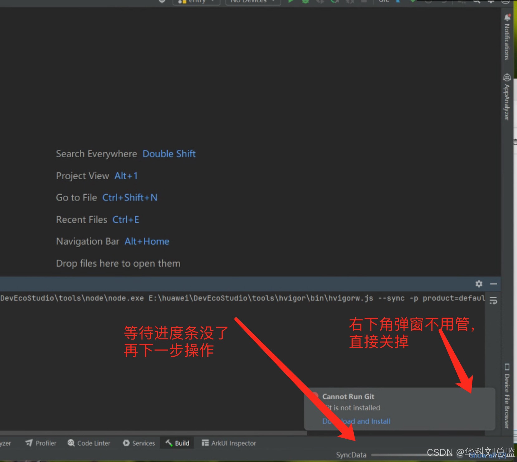 右下角那种小弹窗,无论什么弹窗都不用管,比如Git等,直接关掉!直接关掉!直接关掉!