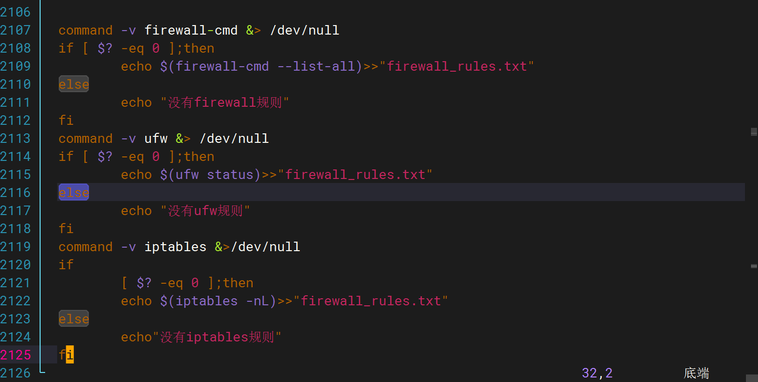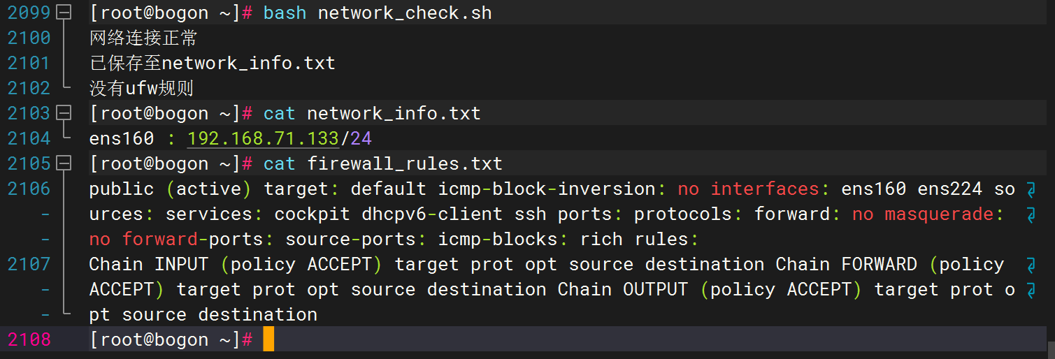 firewall_rules.txt文件中。如果系统没有防火墙或者无法直接获取规则列表,可以输出“无防火墙或无法获取规则信息”到该文件中。