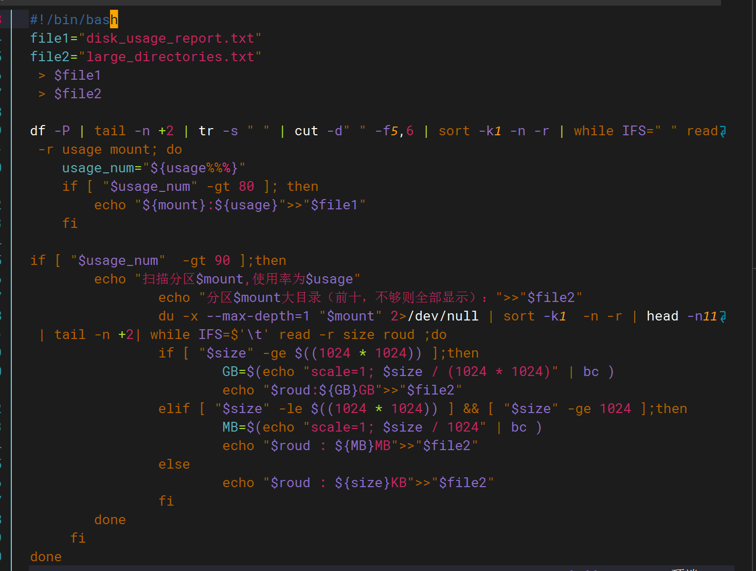 题目三:磁盘空间管理脚本