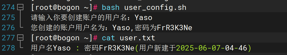 创建一个脚本名为 user_config.sh,完成以下任务: