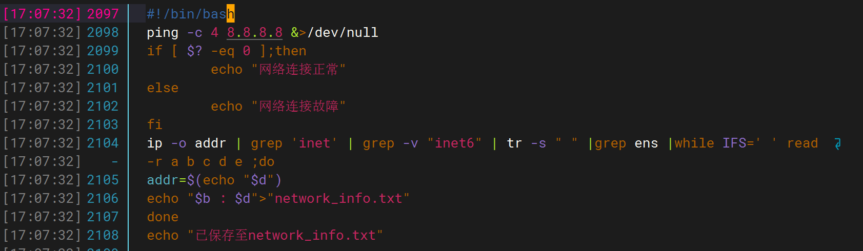 network_info.txt文件中,格式为“网络接口:IP 地址”,每个接口占一行。 -