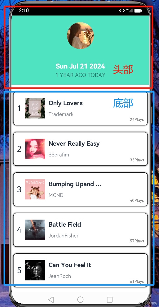 底部使用foreach循环渲染每个歌曲的信息,另外当所需渲染的歌曲过多的时候,我们需要使用Scroll组件,让他歌曲可以滚动以便展示完整歌曲。