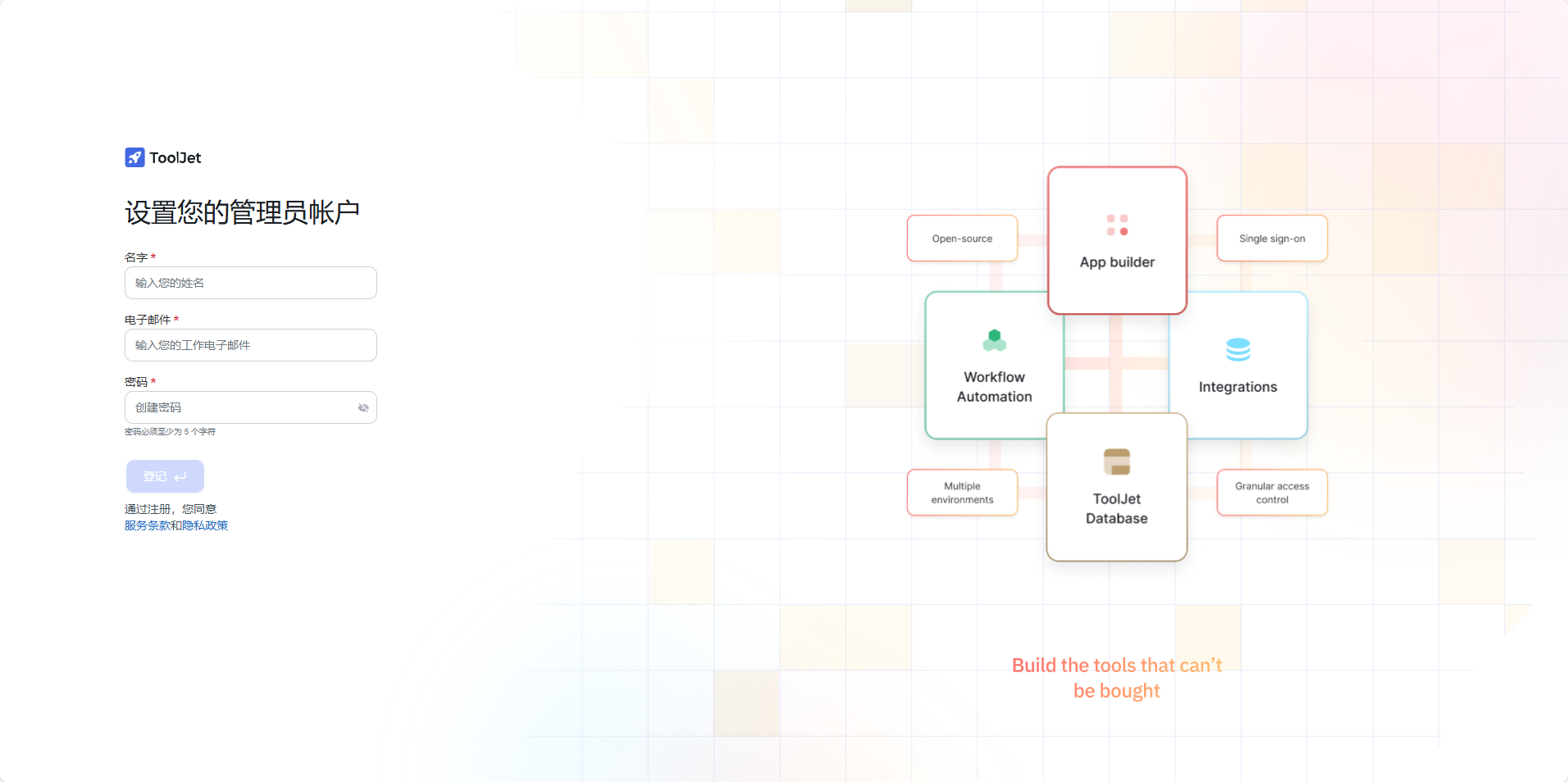 打开浏览器,访问localhost:80即可进入ToolJet的界面