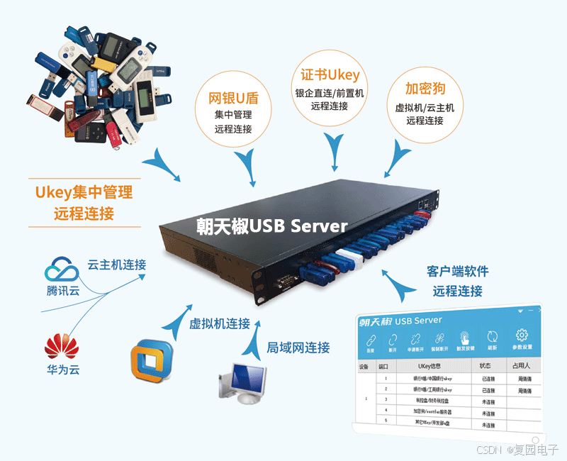 2、朝天椒USB服务器:物理扩展+网络跨越