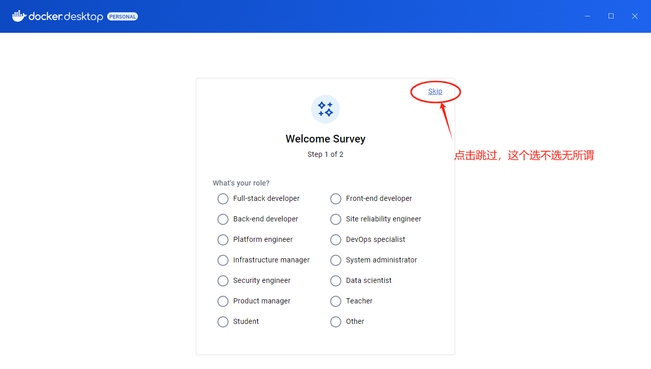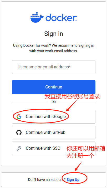 4、登录Docker账号,或者你可以点击下方的Continue跳过