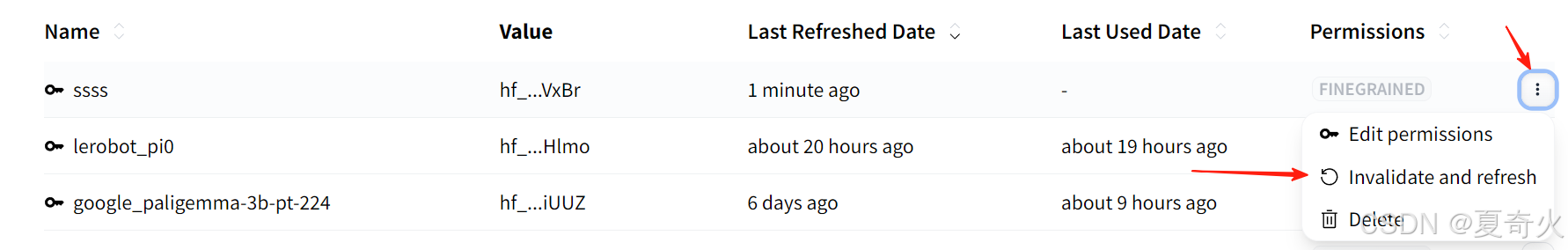 如果忘记token也没关系,点击右边三个点,然后点Invalidate and refresh后弹框点确定,就重新出现上图