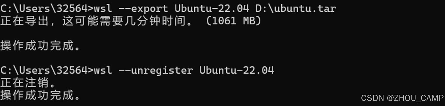 wsl --export Ubuntu-22.04 D:ubuntu.tar
