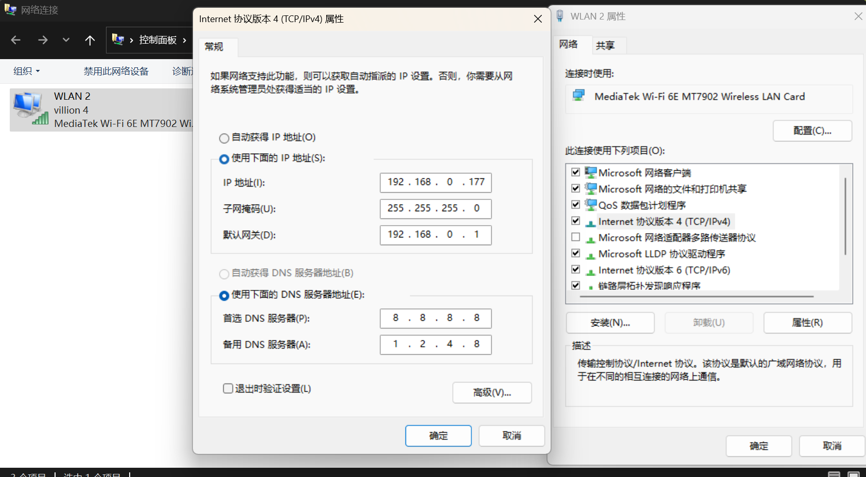 选择使用下面的IP地址,也就是STATIC静态IP以及DNS服务器。