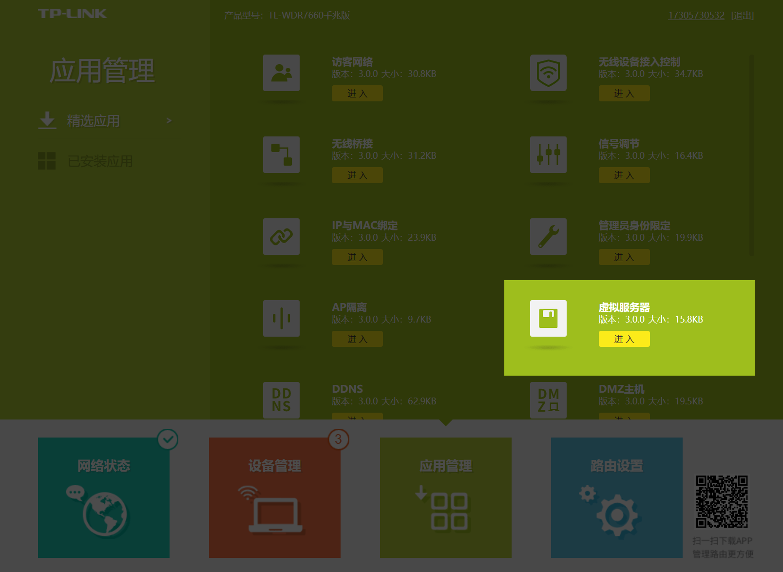 最后我们回到路由器后台页面,设置最重要的端口映射。