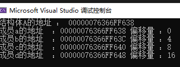 cout << " 成员d的地址 :" << &instanceA.d << " 偏移量 :" << offsetof(A, d) << endl;