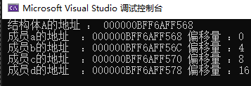 cout << " 成员c的地址 :" << &instanceA.c << " 偏移量 :" << offsetof(A, c) << endl;