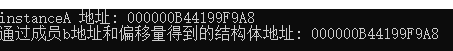 cout << "通过成员b地址和偏移量得到的结构体地址: " << pStruct << endl;