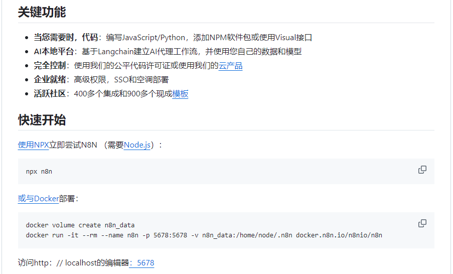 容器化 :n8n 支持基于 Docker 的容器化部署,保证环境一致性,便于移植到不同服务器或云平台,简化安装升级过程。