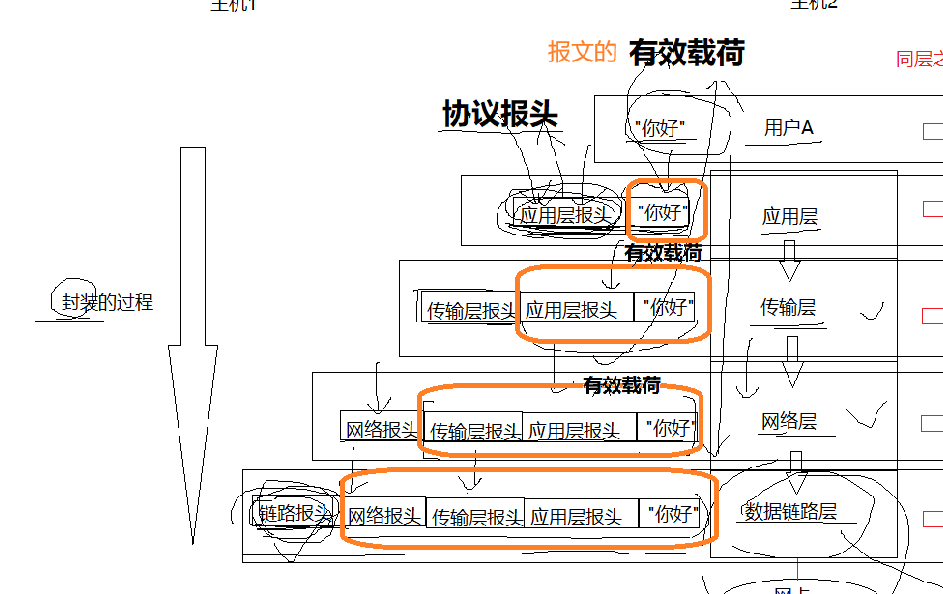 注意对报头和有效载荷在每一层理解清晰。