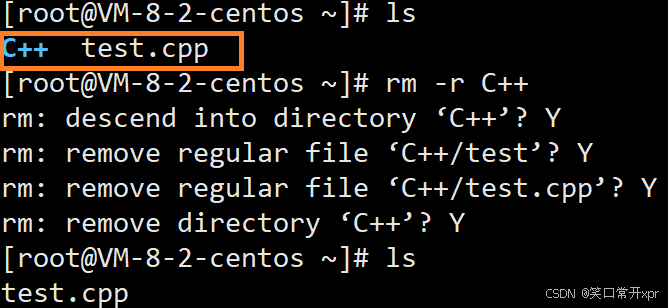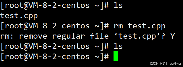 删 除 文 件,输 入 rm + 文 件 名 称,然 后 回 车,可 以 输 入 ls 检 查 文 件 是 否 删 除。