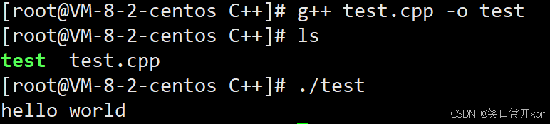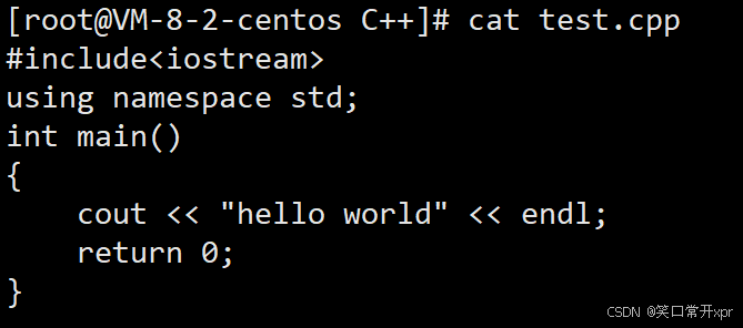- 可 以 使 用 cat test.cpp 查 看 文 件 内 容。