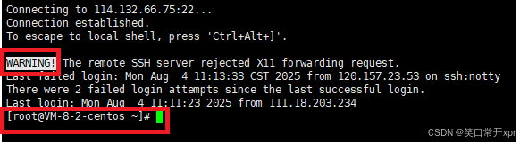 出 现 root@ 字 样 即 表 示 连 接 成 功,现 在 可 以 写 Linux 代 码 了。