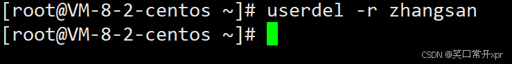 - 输 入 userdel -r +用 户 名,可 以 删 除 用 户。
