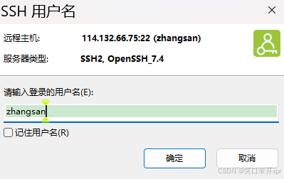 - 其 他 用 户 打 开 Xshell,点 击 新 建,输 入 用 户 名 和 服 务 器 的 IP 地 址,然 后 点 击 确 定。
