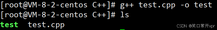 - 输 入 g++ test.cpp 可 以 编 译 文 件,这 里 默 认 生 成 的 文 件 是 a.out。