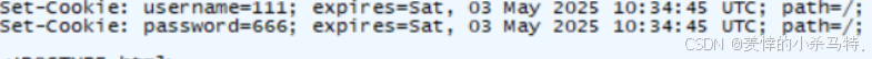 set-cookie: username=111; expires=sat,03 May 2025 10:34:45 UTC; path=/;