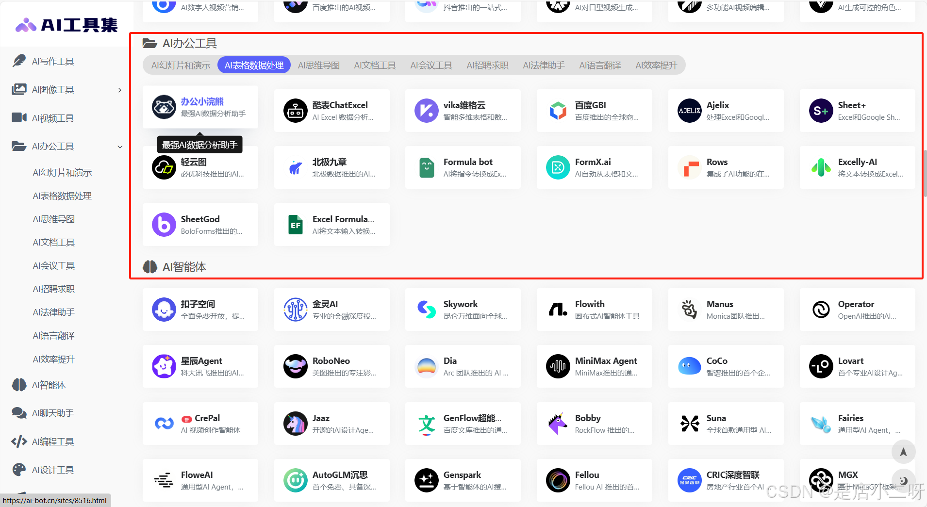 可以选择小棕熊、ChatExcel、北极九章等AI办公工具,都是市面上比较主流的。