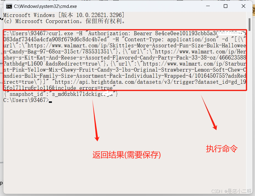 主要格式:curl.exe -H "Authorization: Bearer your_API