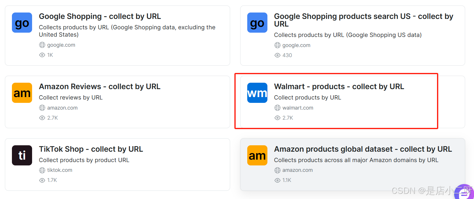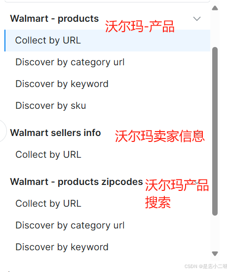 接下来我采用Walmart-products-collect by URL进行演示,以URL方式收集数据。