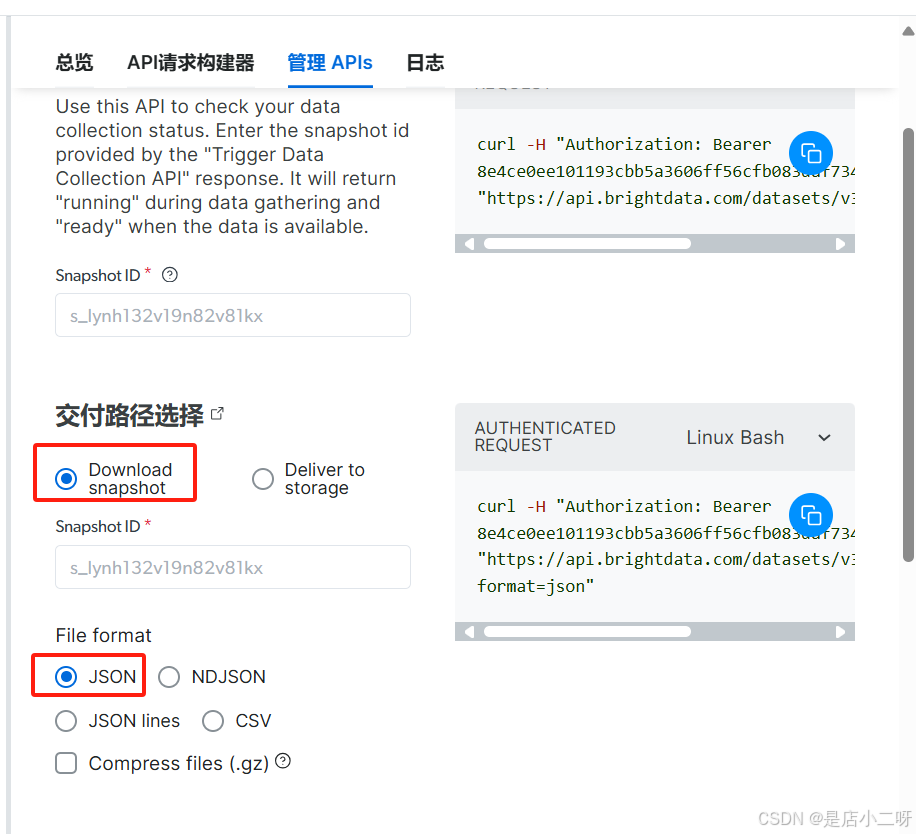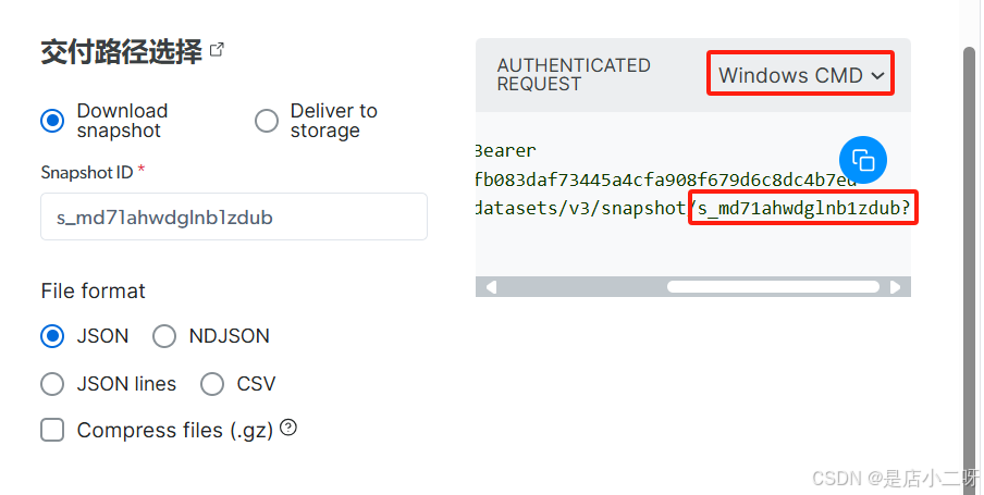 Download snapshot(数据临时存储下载) - 【文件格式】:选择JSON