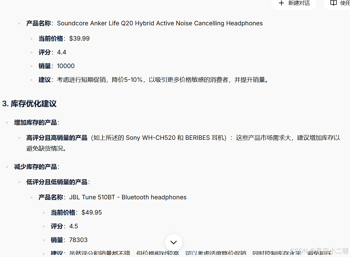 高评分且高销量的产品(如上所述的 Sony WH-CH520 和 BERIBES 耳机):这些产品市场需求大,建议增加库存以避免缺货情况。