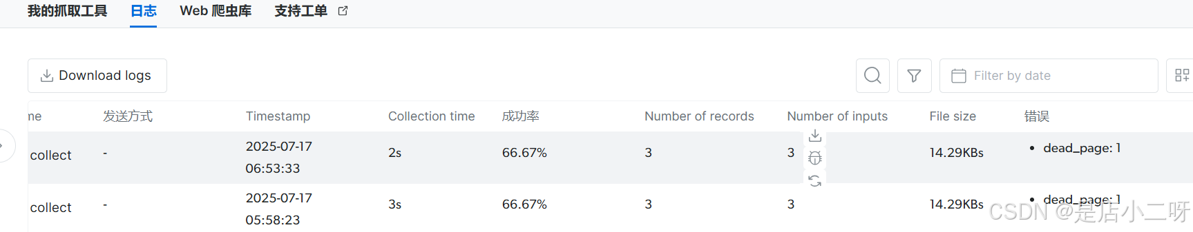 在"日志"我们可以根据JSON / CSV格式下载爬取到数据,并且通过呈现的数据进行分析。