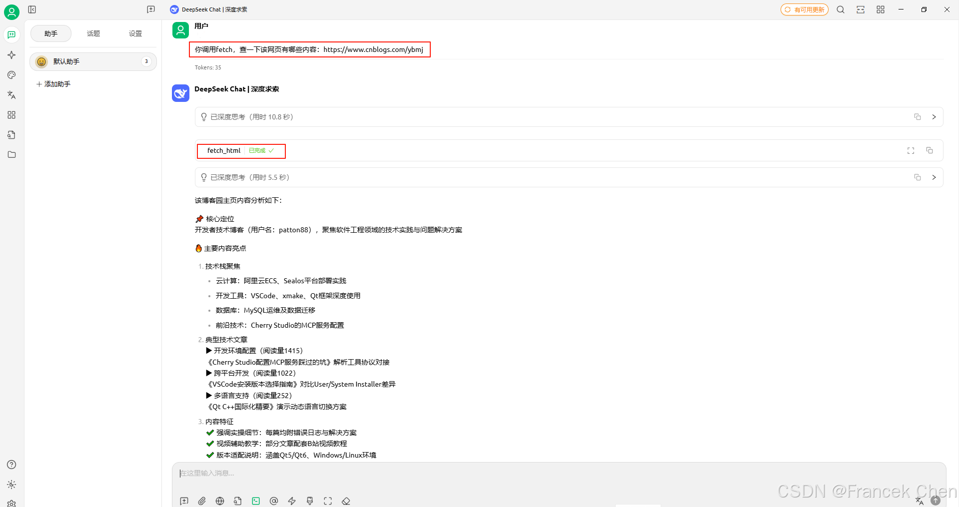 接下来,验证“fetch”服务的功能。在对话框用自然语言的方式,输入要求:总结某一个网页的内容。