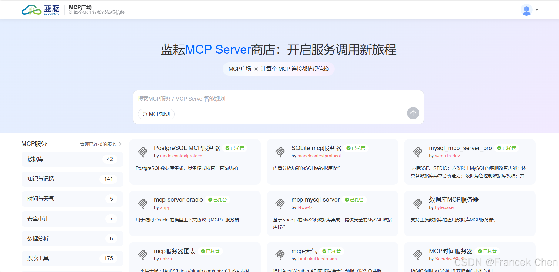 蓝耘元生代智算云平台重磅推出全新“MCP广场”,集结了千余款备受瞩目的热门 MCP 服务,致力于为开发者搭建起大模型与外部工具、数据源之间标准化交互的核心枢纽。平台秉持开源开放的先进理念,为 MCP 工具开发者提供专业的云上托管服务。通过不断对功能矩阵进行迭代升级,平台将深度推动大模型与 MCP 生态的协同发展、共同进化,为 Agent 及各类 AI 应用的快速落地提供强劲动力。
