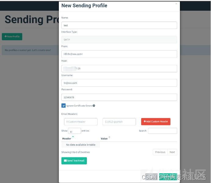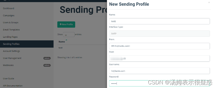 在 Gophis 新建邮件服务配置,同一个 Host 不同的邮件用户。在 Campaigns 的时候选择这个发送配置即可。