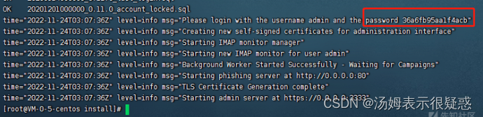 这里的账号是 admin 密码是创建服务时生成的,通过 docker logs gophish命令可以看到密码。