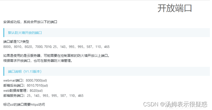 安装时请保证 8000,8010,8020,7000.7010.25,143,993,995,587,110,465 这些端口没被占用。