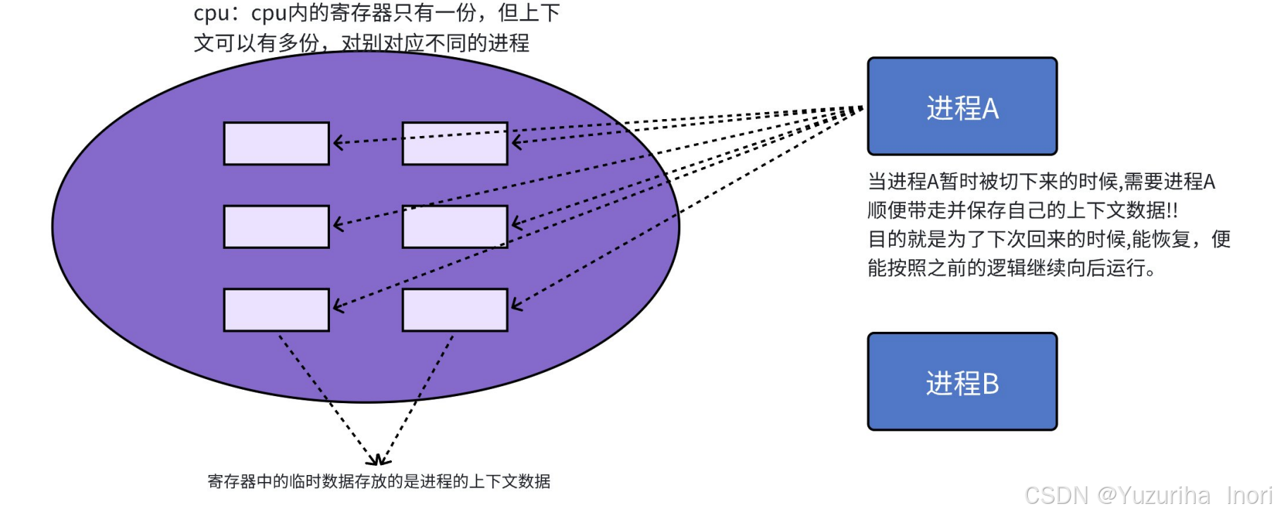 CPU中存在各种各样的寄存器,用于保存当前正在运行进程的各种临时数据