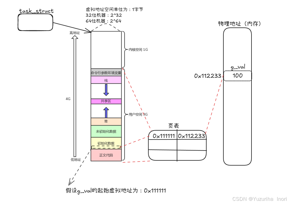 2.一个进程,也对应拥有一个页表。页表的作用是建立虚拟地址与物理地址的映射关系,用于虚拟地址与物理地址的转化。