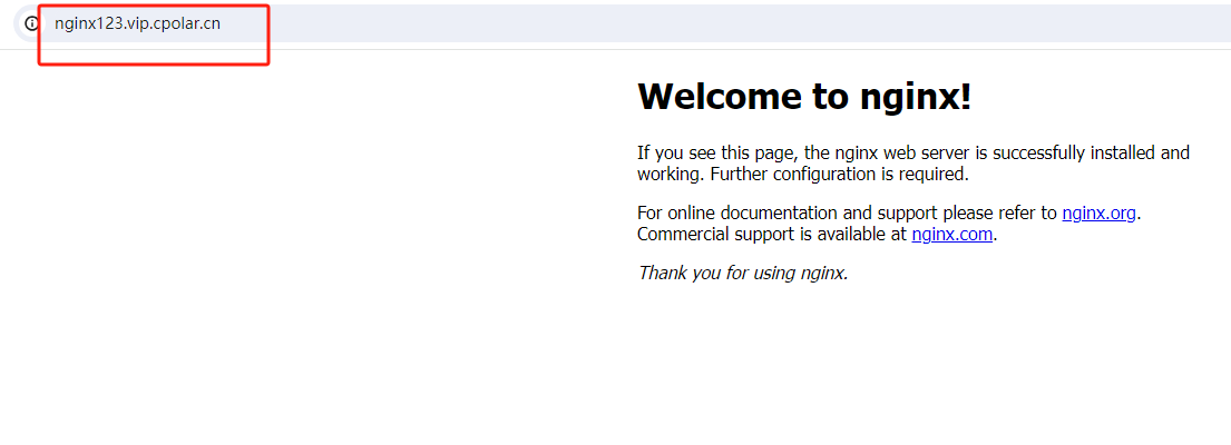 最后,我们使用任意一个固定公网地址在浏览器访问,可以看到访问成功,这样一个固定且永久不变的公网地址就设置好了,随时随地都可以远程访问本地Nginx服务了!