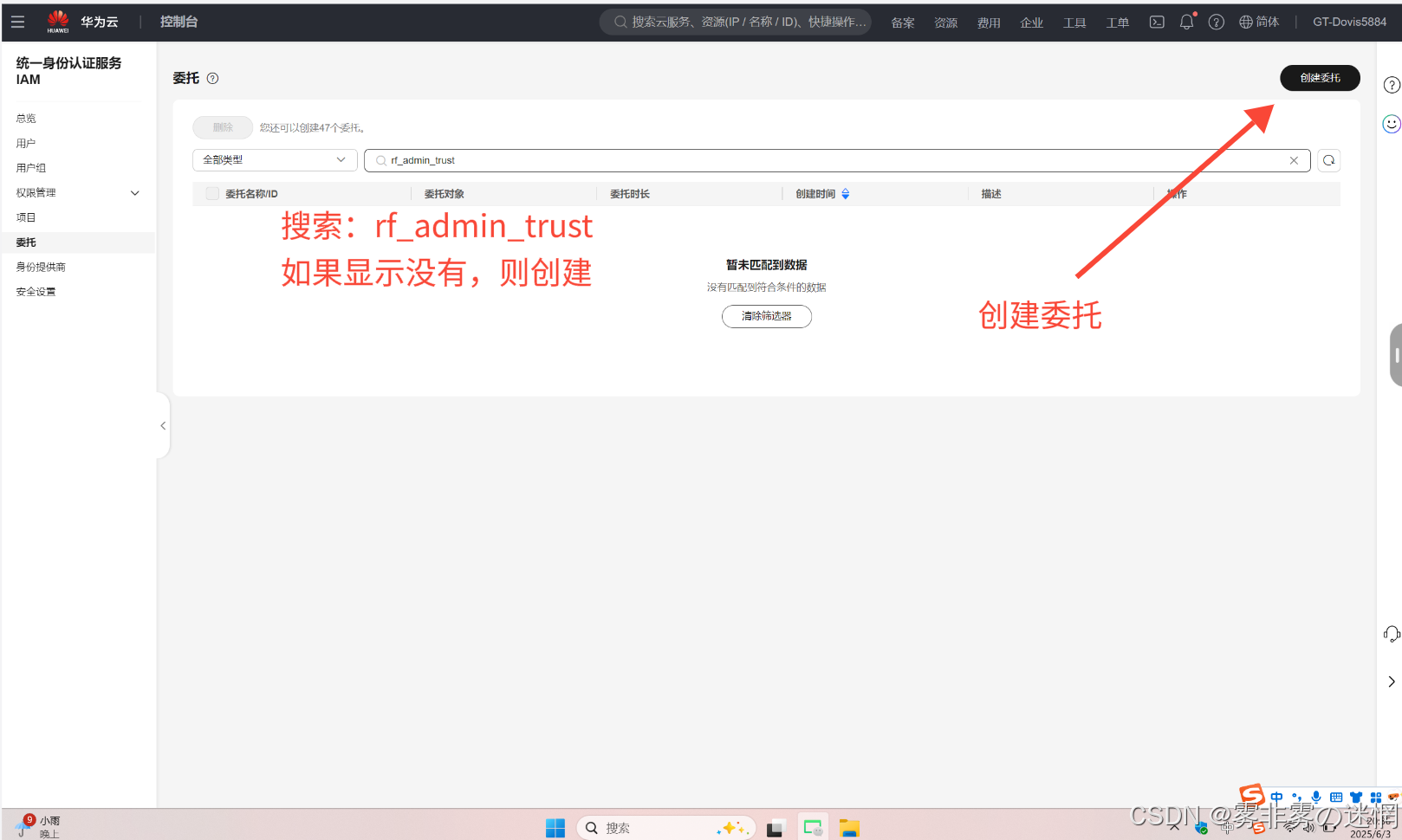 (1)可以直接在控制台搜索“委托”,搜索下面这个委托名,如果显示没有,就需要创建一个