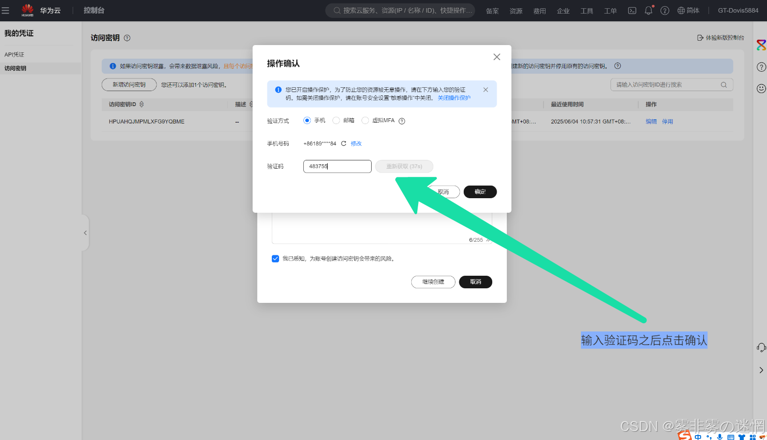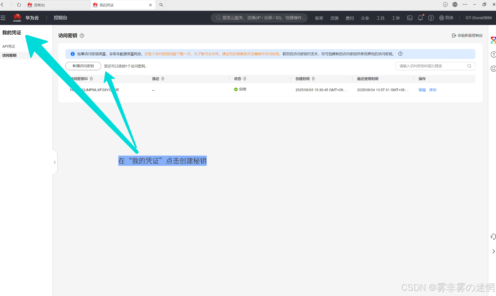 (2)打开访问秘钥,点击创建秘钥,秘钥只能查看一次,注意保存