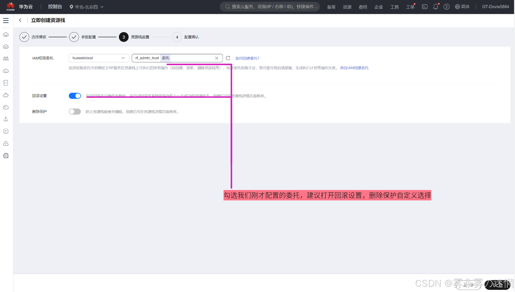 (4)这里一定要勾选我们刚才设置的rf_admin_trust委托,其它都可以自定义选择