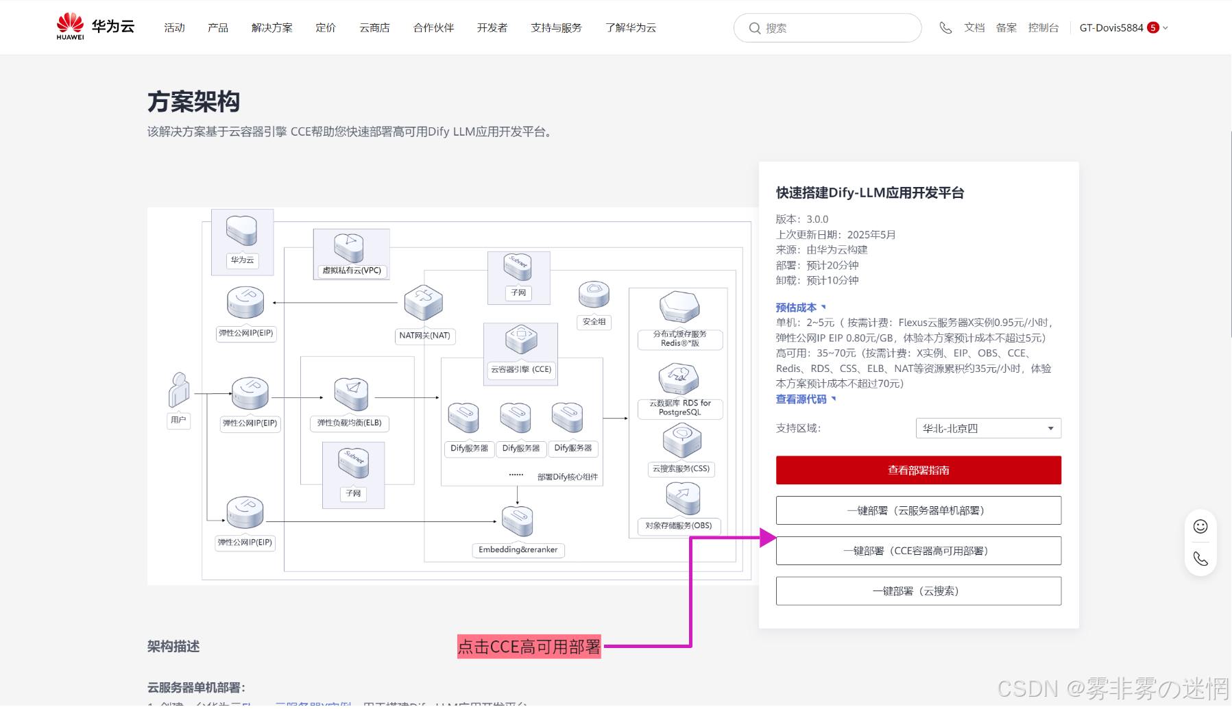 在华为云上部署 Dify 的过程非常直观,尤其是通过 CCE 提供的 Kubernetes 集群,配合 Dify 官方的 Docker Compose 部署指南,部署时间大幅缩短。单机部署(ECS)适合快速验证,CCE 高可用部署则展现了企业级可靠性!
