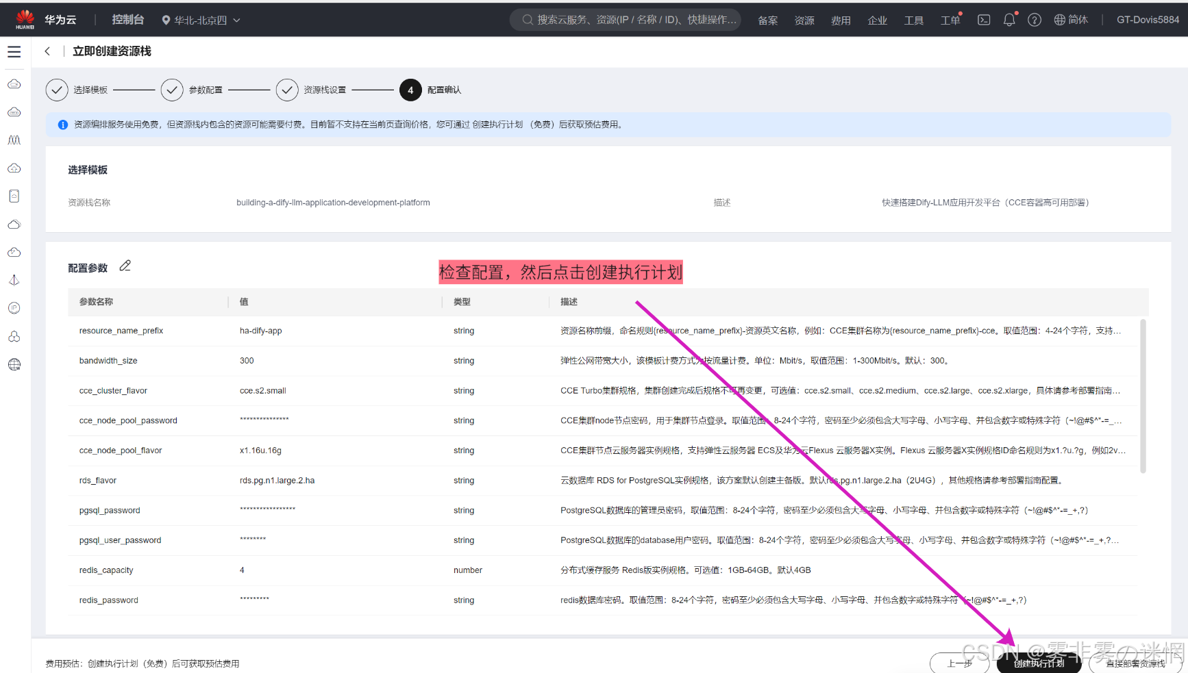 (5)确认配置之后,点击创建执行计划,创建执行计划
