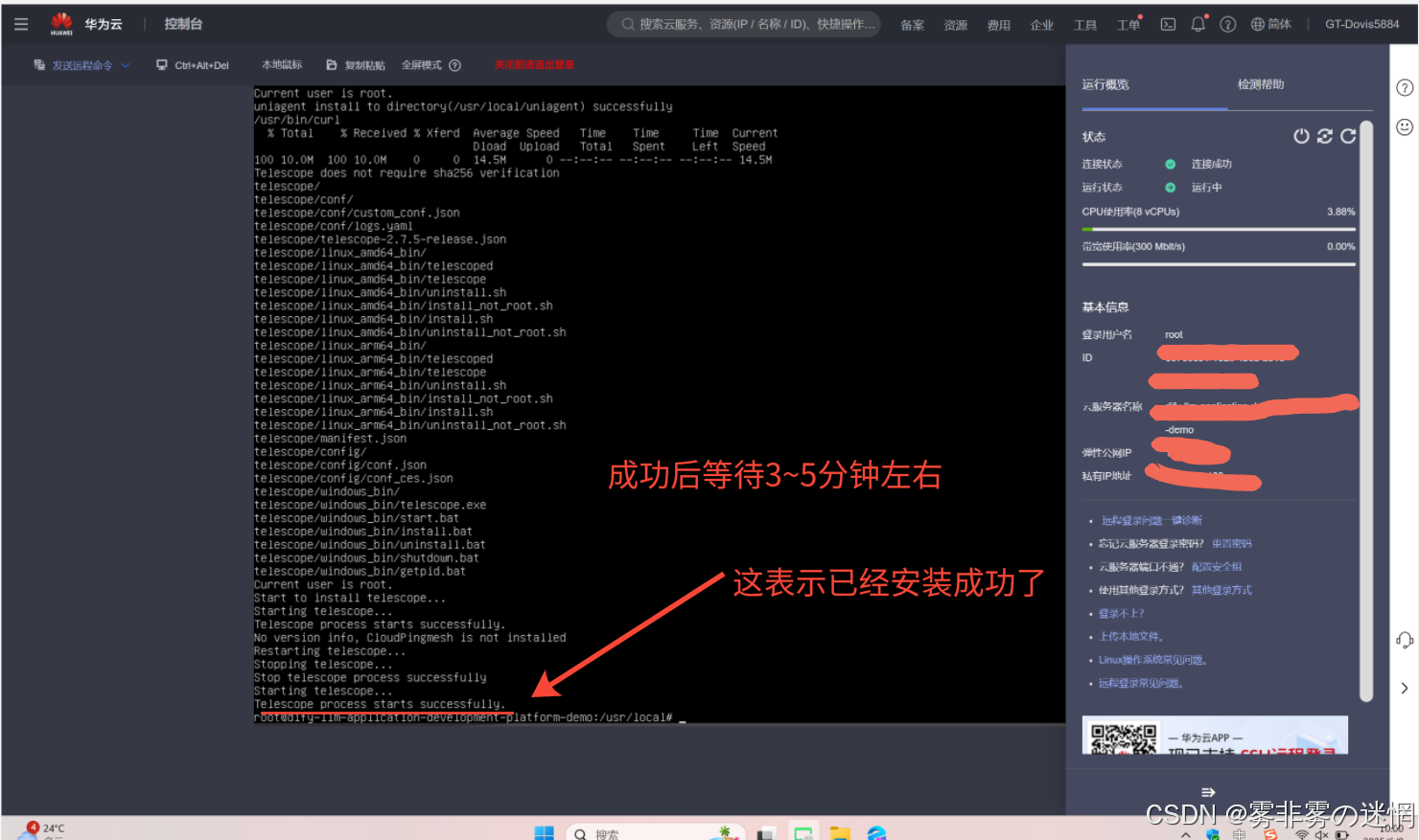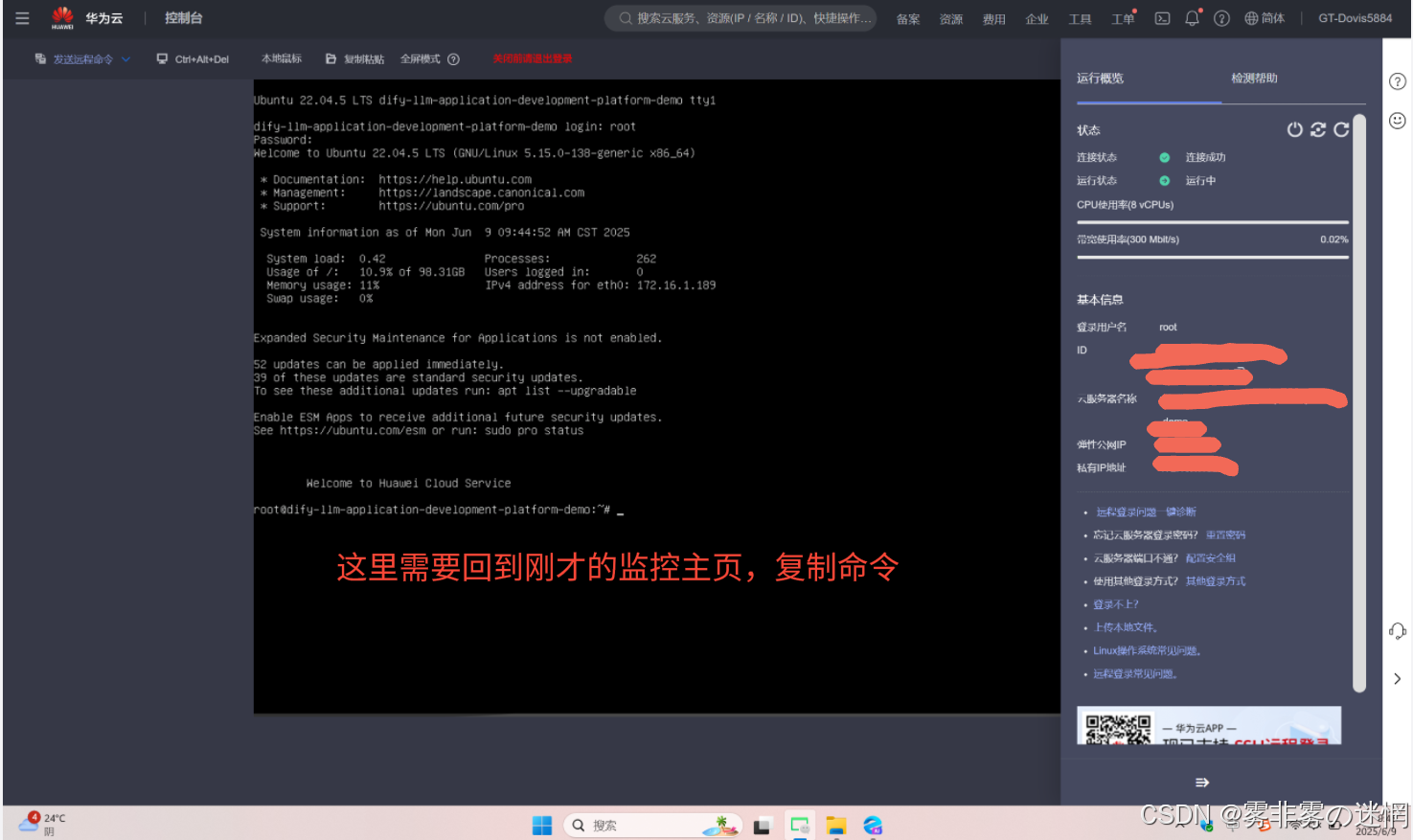 (4)这样的界面下,我们需要回到云监控服务复制 Linux 的执行命名