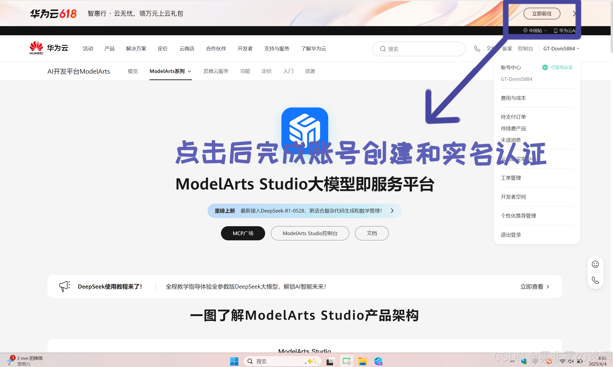 (1)新人需要先登录华为云平台,然后完成认证才可以使用各种服务