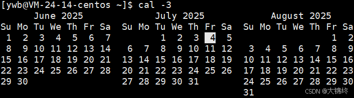 -y 显示当前年份的日历cal ,若后面有跟年份就显示该年份,也可以不加该选项直接加年份
