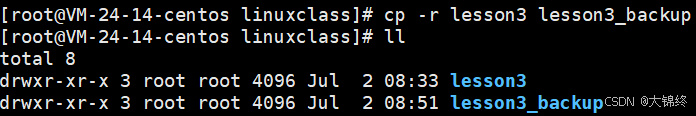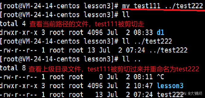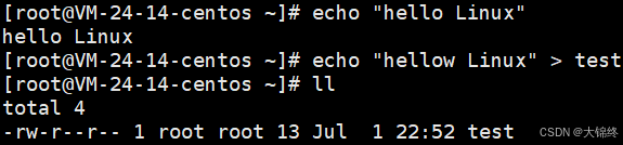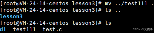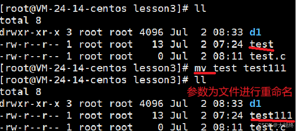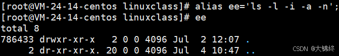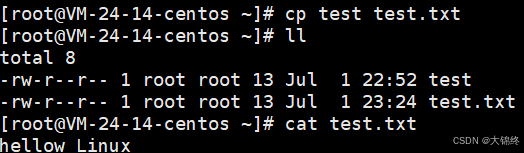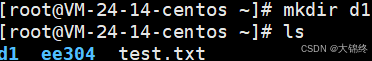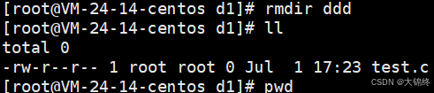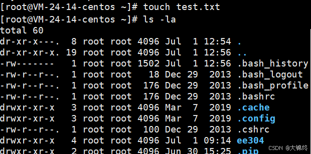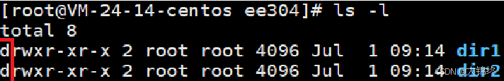 2.显示文件具体信息中,第一行的字母表示文件类型,d:是一个目录,-:文件是一个普通文件(后续深入学习),Linux中以‘.'开头的文件称为隐藏文件