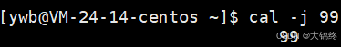 -j 显示在当年中的第几天(一年日期按天算,从1月1号算起,默认显示当前月在一年中的天数)
