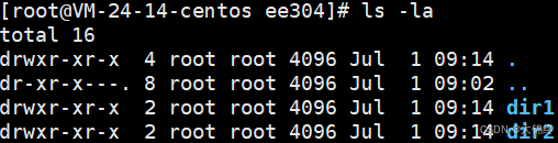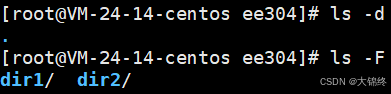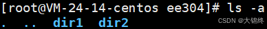 该语句执行 ls 命令时,系统列出了当前目录 ee304 下的文件和子目录,结果显示为 dir1 和 dir2